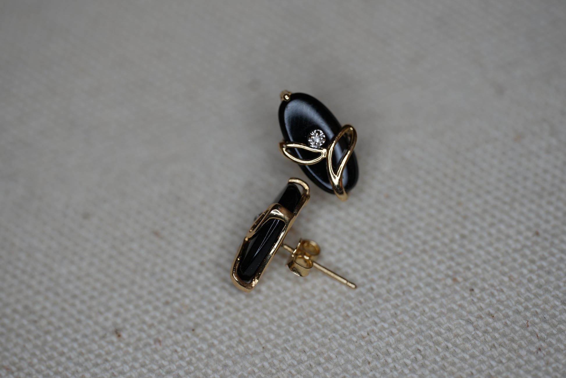 These vintage earrings have an onyx stone that makes a little flower with a diamond stand out! These ate pushback earrings, easy to wear and weigh 1.8grams. Add them to your collection!