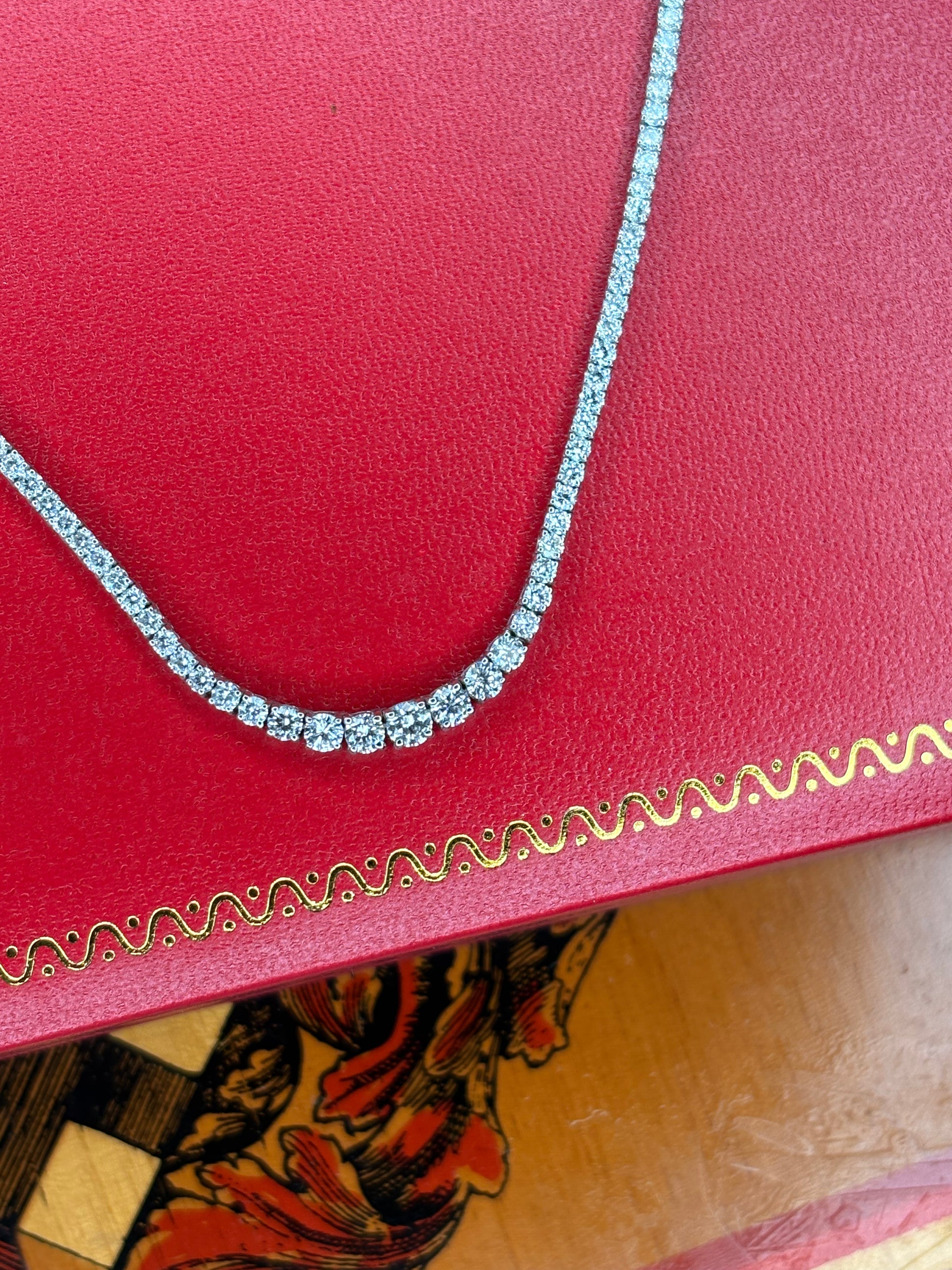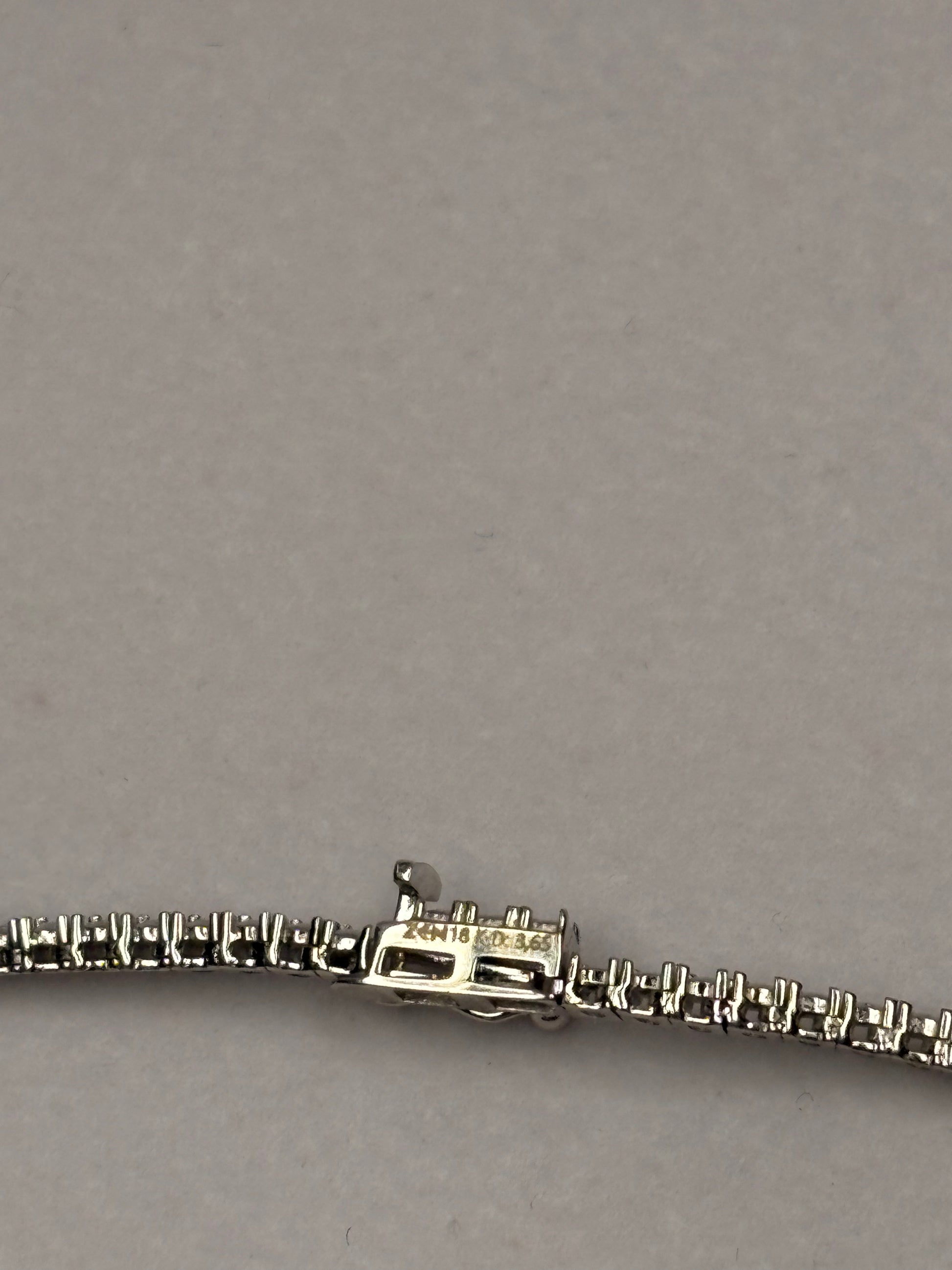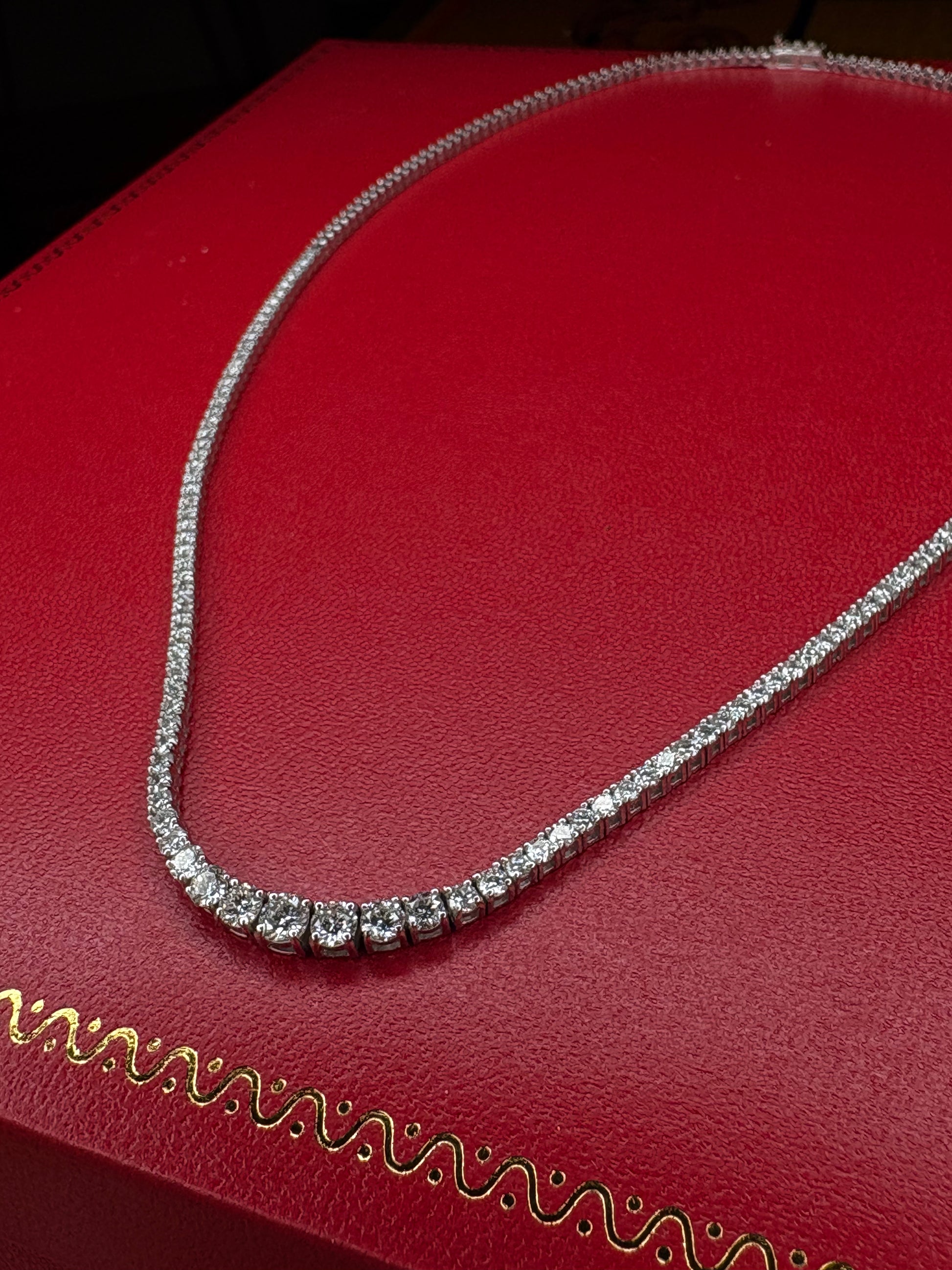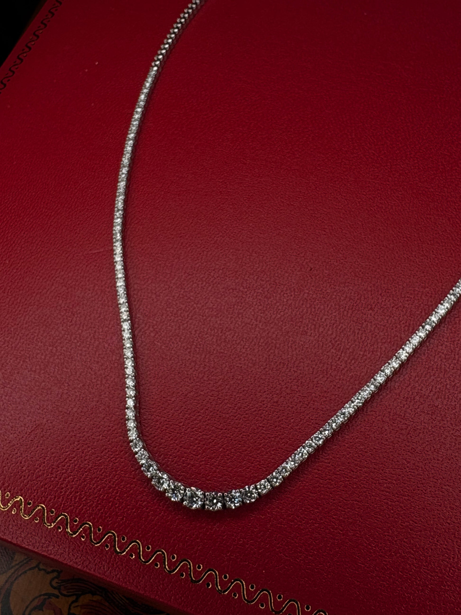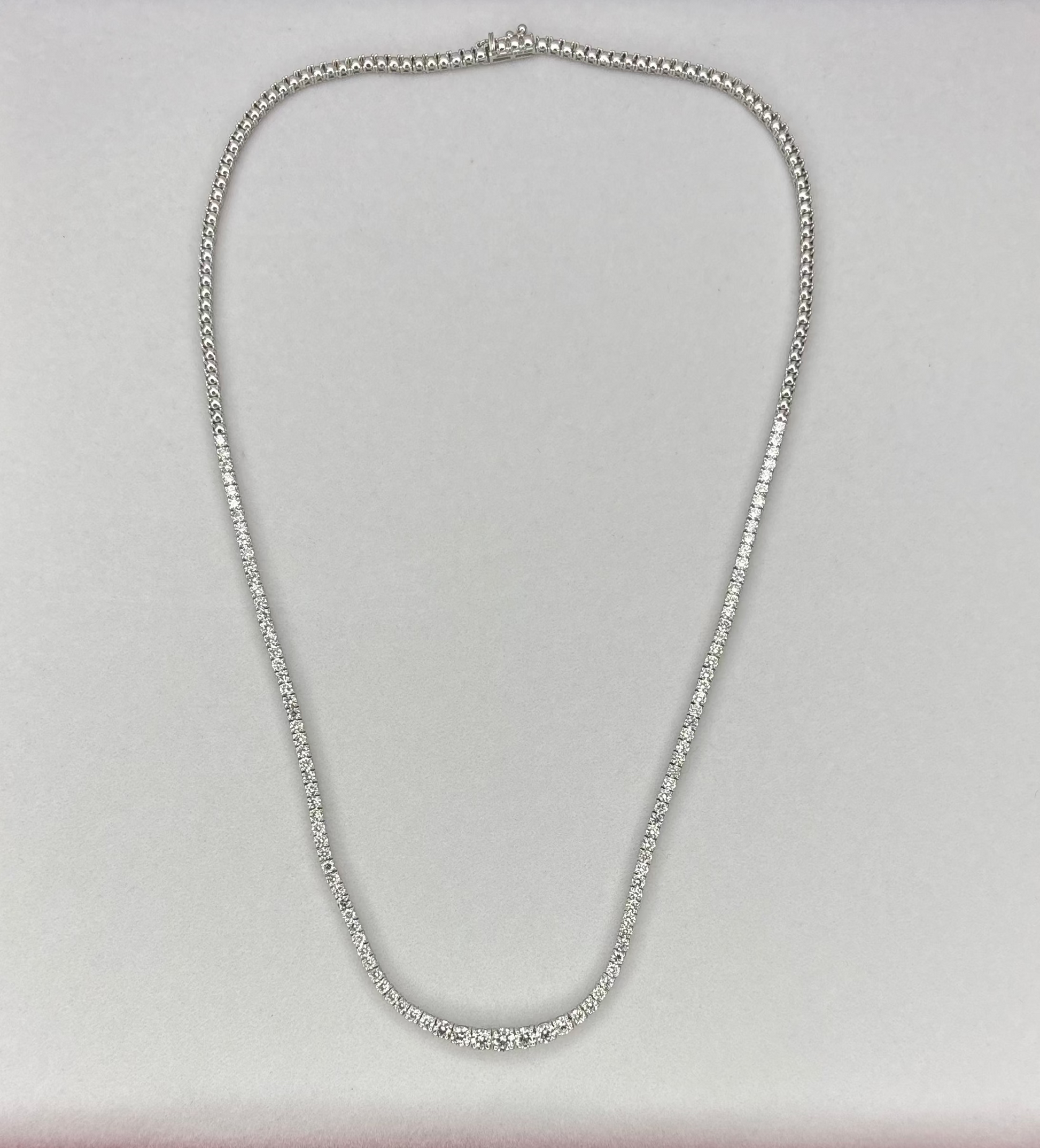 18k White gold, Bigger to Smaller gradually Natural Diamonds necklace has 3.65ctw. All Natural Diamonds. It’s 16” in length. Add it to your collection!