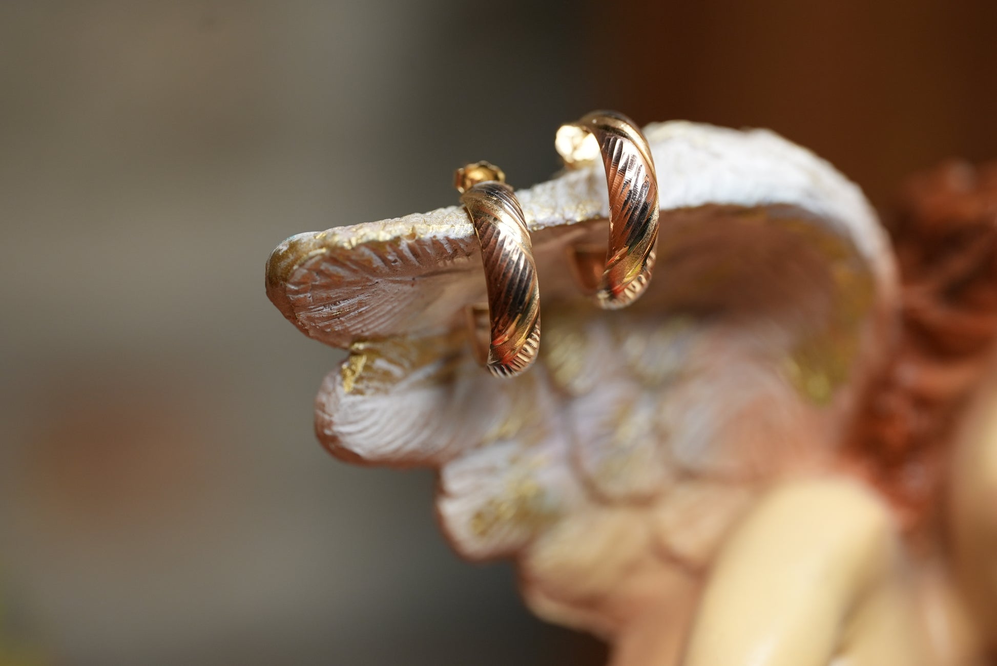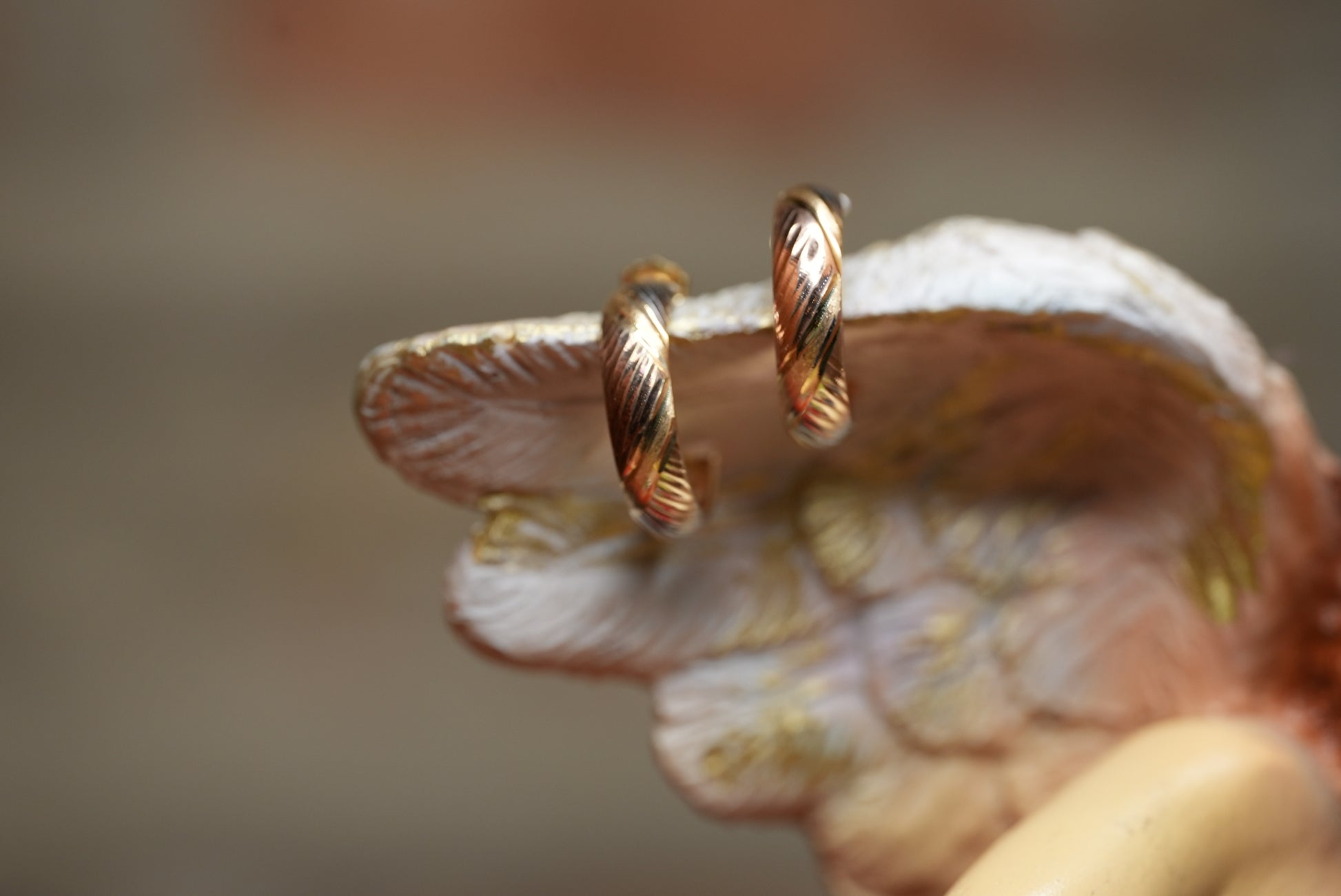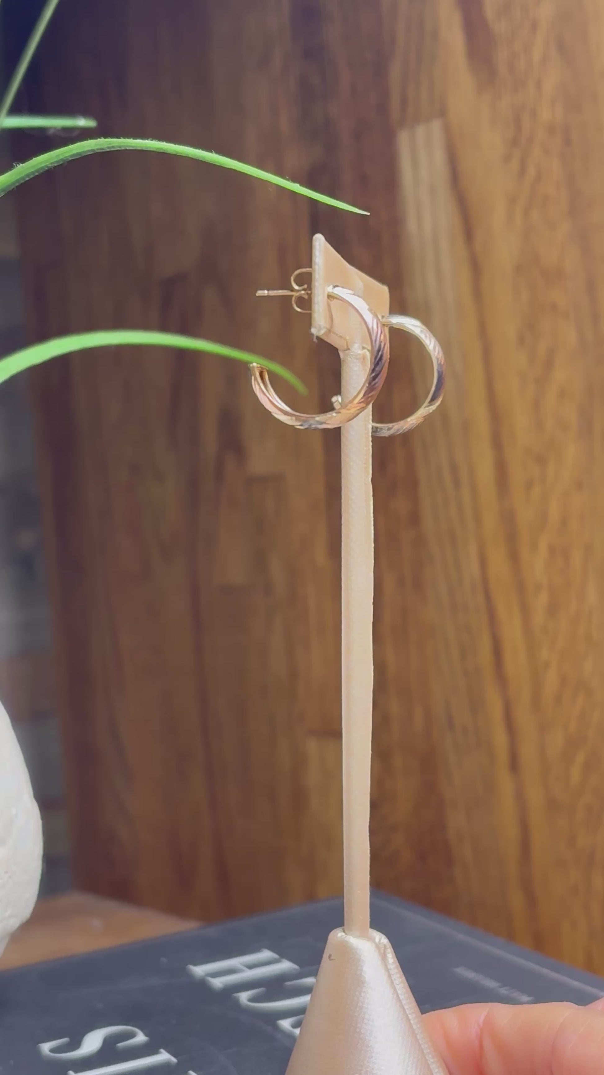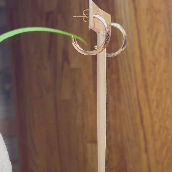 These are 10k half hoop, decorated with a diamond cut and Tri color design. They have a pushback post and they weigh 1.9 grams. Add it to your collection!